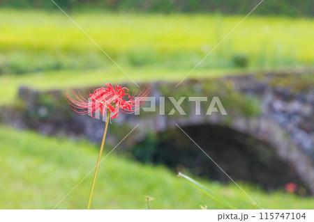 両合棚田の石橋と彼岸花(大分県宇佐市院内町)