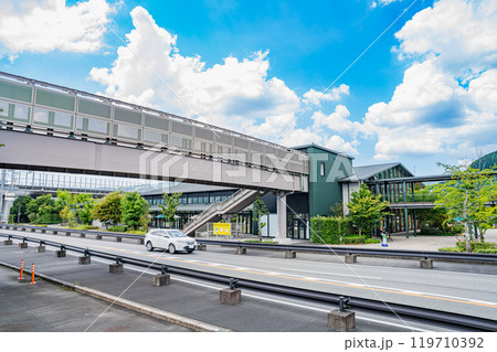 青空に映えるKADODE OOIGAWAと高速道路のある風景(静岡県)