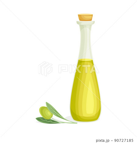Golden Olive Oil Poured in Glass Corked Bottle or Jar Vector Illustration