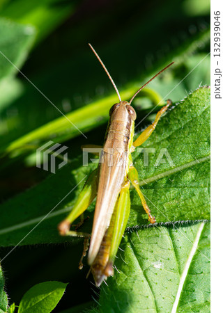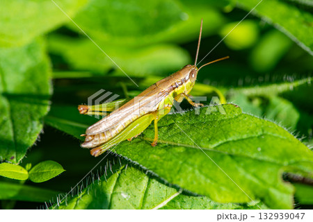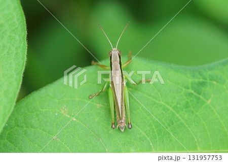 葉にとまるバッタ バッタ科コバネイナゴ♂