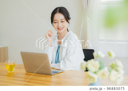 テレワークするTシャツの女性