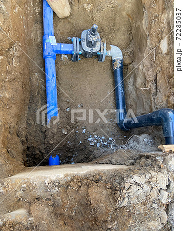 敷設中の上水道用、水道配水用ポリエチレン管
