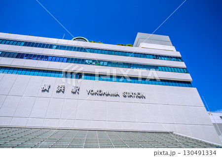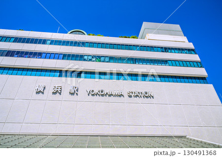 日本の横浜都市景観 横浜駅みなみ東口出入口などを望む