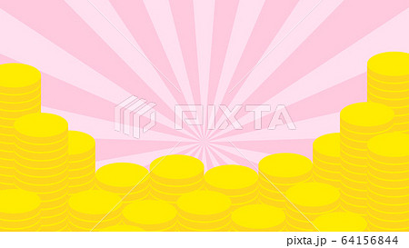 大量に降ってくるコイン 集中線 背景 / ピンク
