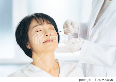 顔に注射を受ける女性 美容整形 ヒアルロン酸 ボトックス注射