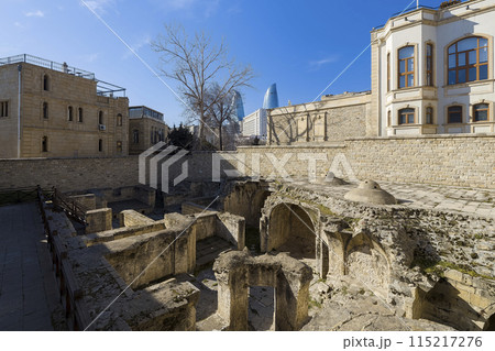 Panoramic view of the remnants of the Shirvanshahs Palace bathhouse in Baku, Azerbaijan