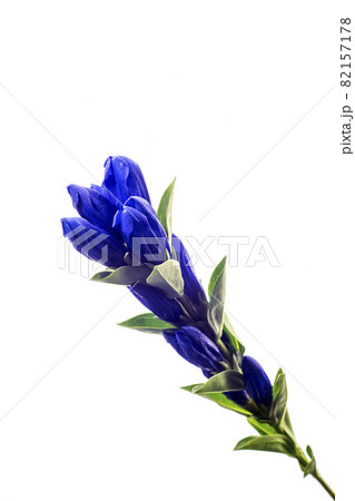 白を背景とした濃い青のリンドウの花