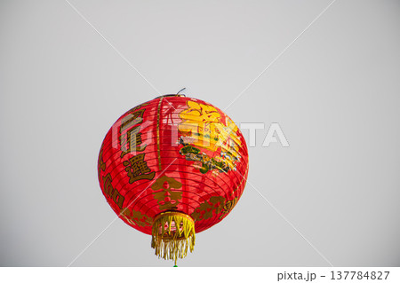 Traditional red Chinese paper lantern with golden decoration isolated on clean background. Symbol of luck, prosperity and celebration used during Asian festivals and Chinese New Year.