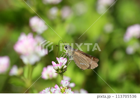 生き物 昆虫 イチモンジセセリ、ムラサキツメクサで吸蜜