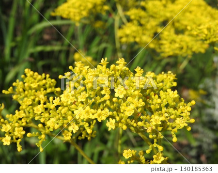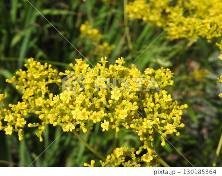 日本の夏の庭に咲く黄色いオミナエシの花