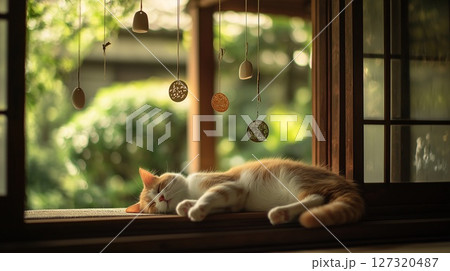 縁側の夏の午後と風鈴の音、癒しのティータイム