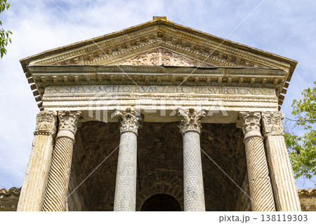 Tempietto sul Clitunno Roman temple detail in Umbria