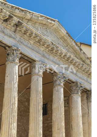 Temple of Minerva columns and detailed architecture, Assisi