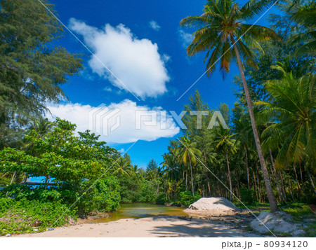 椰子の木がある南国の閑静なビーチ (カオラック、パンガー県、タイ王国)