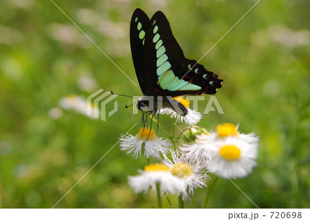 ハルジオンの花の蜜を吸うアオスジアゲハ