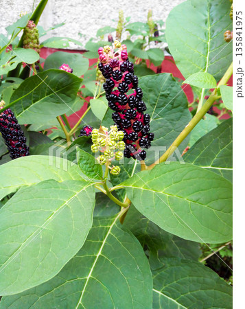 Phytolacca americana plant with ripe and green