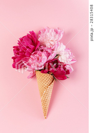 peony flowers in the waffle cone