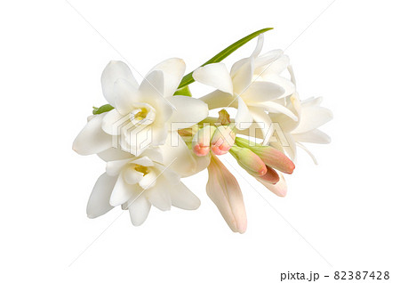 Image of tuberose flower on white background. Nature. Illustration, Generative AI.