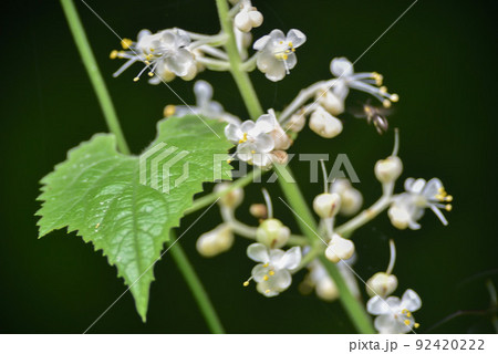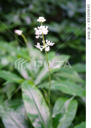 8月夏の藪に咲くヤブミョウガの白い花