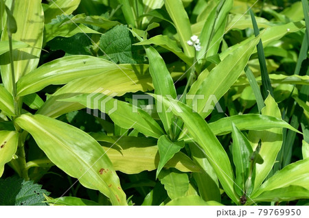 夏の茂みのヤブミョウガ