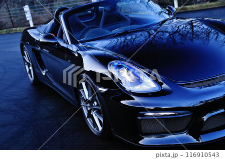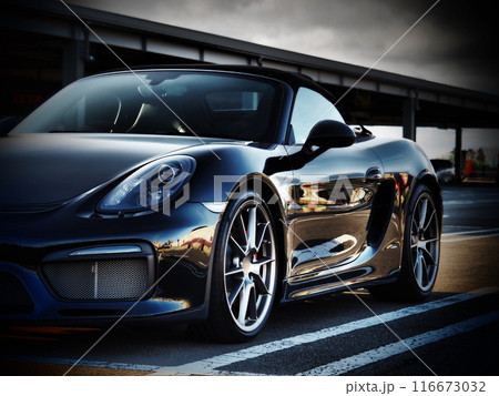 夕焼け空とポルシェ718ボクスター オープンカー コンバーチブル