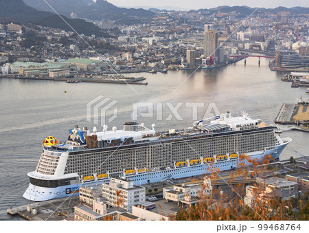 [日本・九州] 鍋冠山から見える長崎クルーズ船コスタセレナのクルーズ船の鳥瞰図。