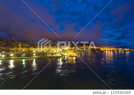 イタリア 早朝のジェノヴァ港 Ente Bacini造船所 Port of Genoa, Italy
