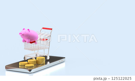 The Pink piggy bank in Shopping cart for Marketing concept 3d Rendering.