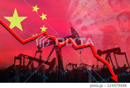 Oil crisis concept with china flag. Oil crisis with the flag of China on the economic graph