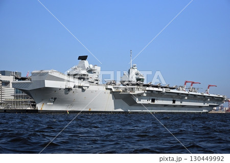 神奈川県横須賀海米軍基地に停泊中のイギリス(英国)海軍航空母艦プリンス・オブ・ウエールズ