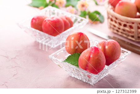 甘酸っぱくて美味しい スモモ( 早生 )ピンク背景