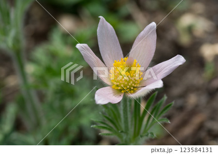 Pasque Flower Pulsatilla vulgaris in Garden Close-up