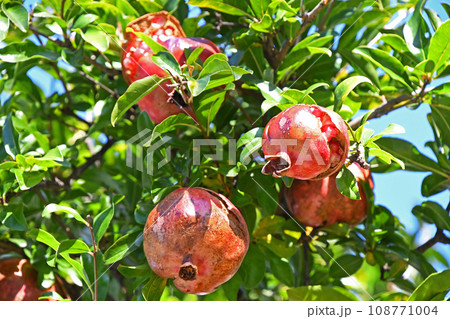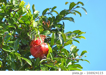 ざくろの実 Bright red and beautiful pomegranate fruit