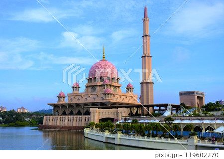 View of Masjid Putra Mosque and lake in Putrajaya, Malaysia
