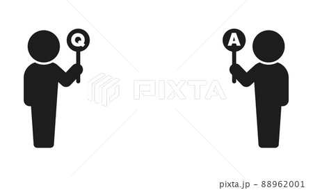 QとAが書かれたプラカードを持っている2人の人のアイコン - Q&A・質疑応答・クイズのイメージ素材