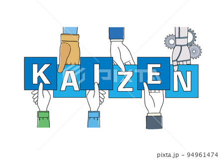 作業服姿の人々とKAIZENの文字イラスト