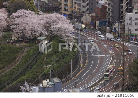 飛鳥大坂を行く国際興業バス・都電荒川線(東京都北区王子/飛鳥山)