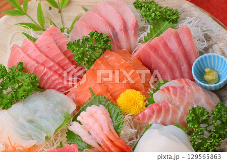 お刺身の盛り合わせ、刺盛り、海鮮料理、お造り、刺し身、シーフード料理
