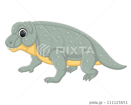 Amphibian Erythrosuchids large basal dinosaur cartoon character. Vector archosaur form carnivores diapsid reptile. Prehistoric animal of Jurassic period