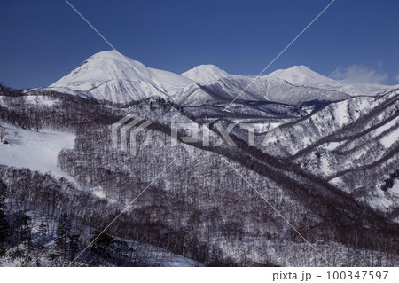 北海道羅臼町 夏の北海道 知床峠から見る晴天の羅臼岳