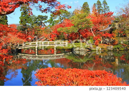 Red foliage colors in Bishamondo temple garden in autumn, Kyoto