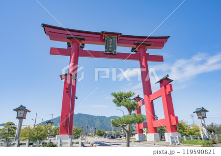 冬の土津神社 白い鳥居と参道 福島県猪苗代町