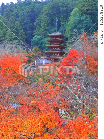 秋の長谷寺(本堂より・国宝・奈良県桜井市・縦構図)