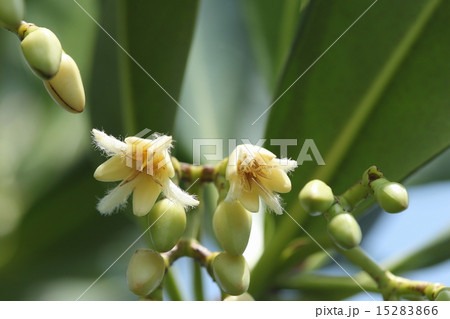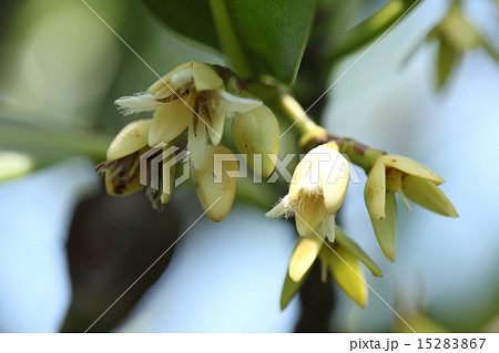 自然 植物 ヤエヤマヒルギ、葉のわきに小さな白い花が多数付きます