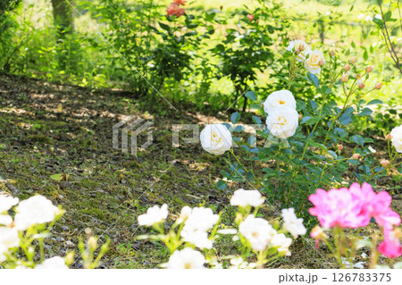 (神奈川県)横浜市・山下公園 満開のバラの向こうに氷川丸