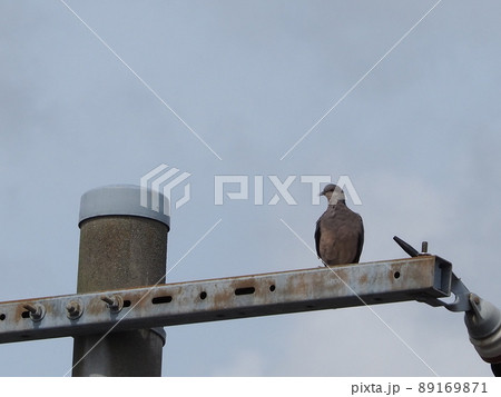 鉄パイプの上にとまるキジバト