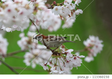 桜の木とまるニュウナイスズメ