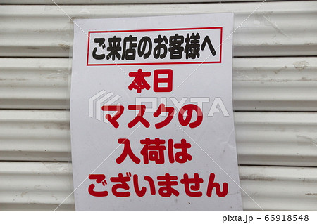 マスクの入荷未定を知らせる張り紙(薬局)