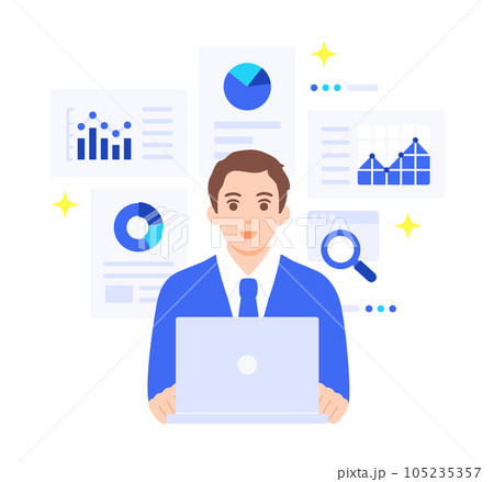 データを可視化し分析するビジネスパーソンのベクターイラスト素材。