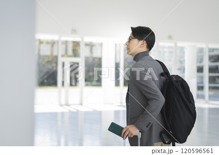 ビジネス 空港 スマホ ビジネスマン 帰国 出張